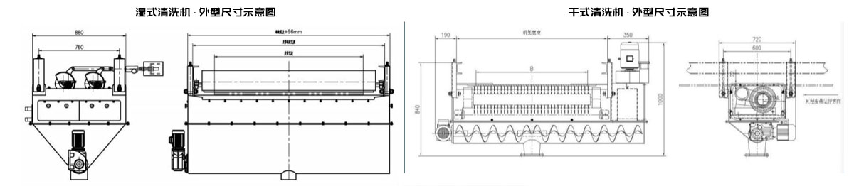 干式清洗机 | L≧720mm | W=机架宽度+550mm | H≧720mm (高度为皮带机架槽钢下表面至地面的距离) |